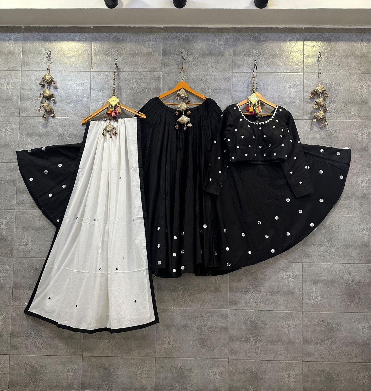 Black Chaniya Choli for Navratri Patola Lehenga 3 pc Readymade garba Lehenga Festival outfit Gamthi Work Garba Night lehenga ready to wear