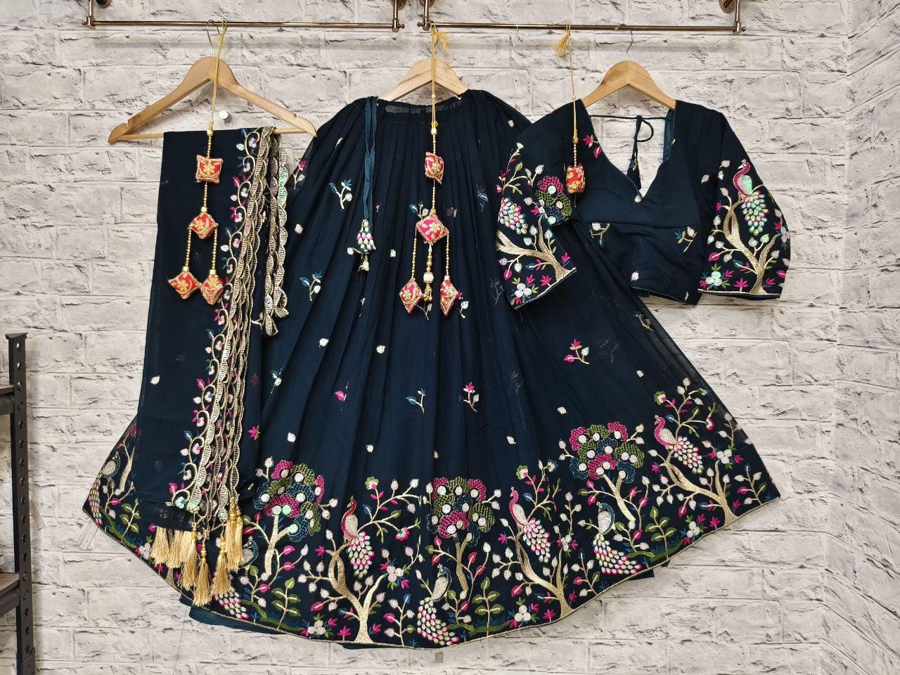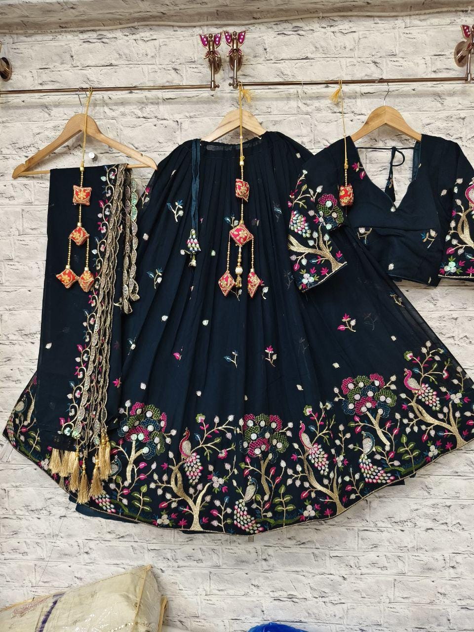 Blue Chaniya Choli for Navratri Patola Lehenga 3 pc Readymade garba Lehenga Festival outfit Gamthi Work Garba Night lehenga ready to wear