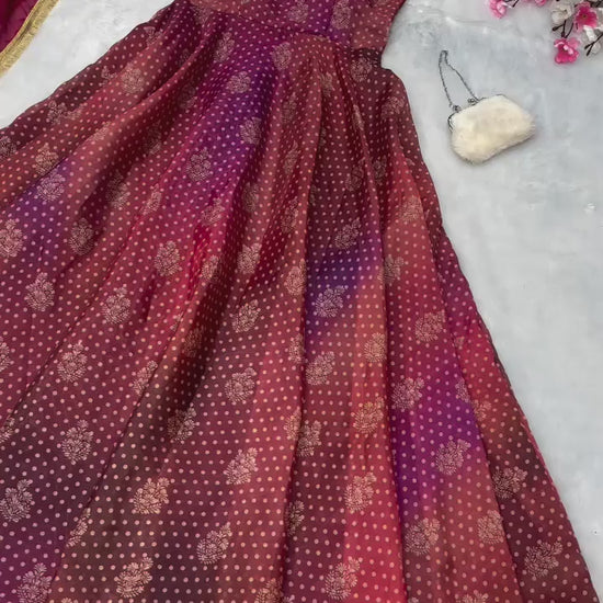 * Anarkali Gown * - pure Jimmy organza silk digital printed padded gown with 54+gown length !! 8mtr Flair outfit ! 🔥