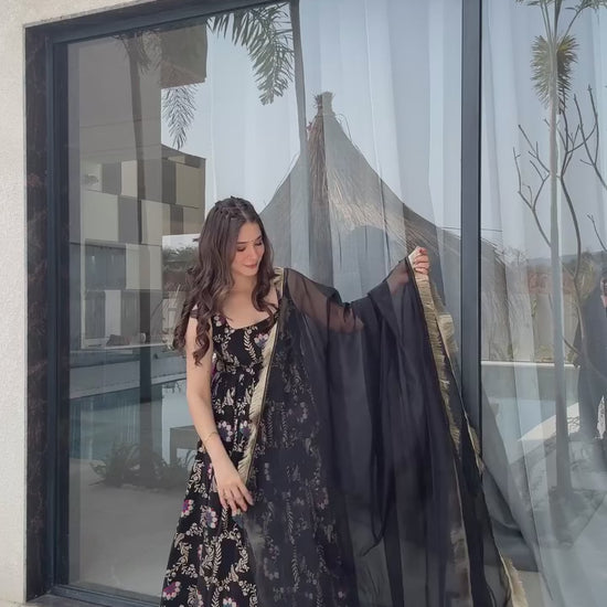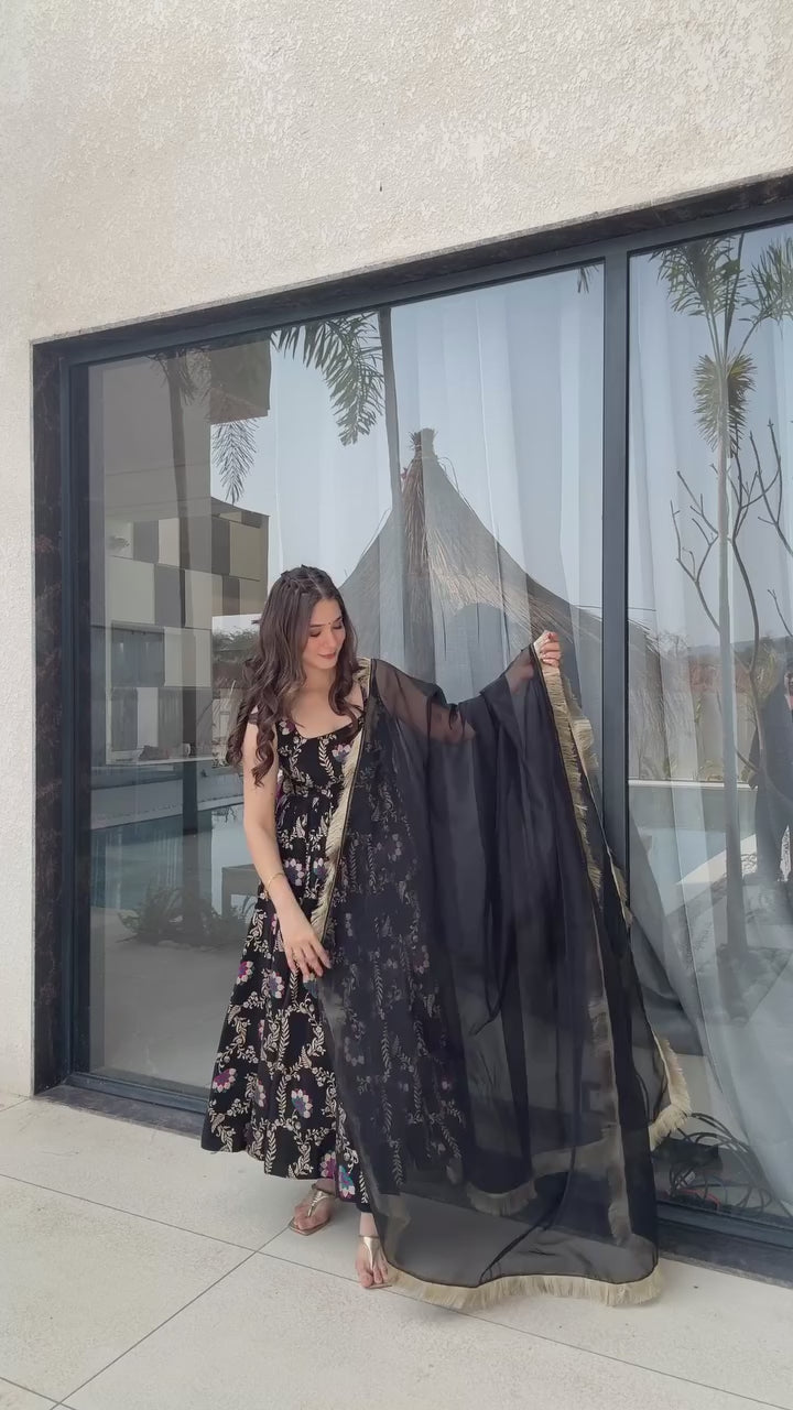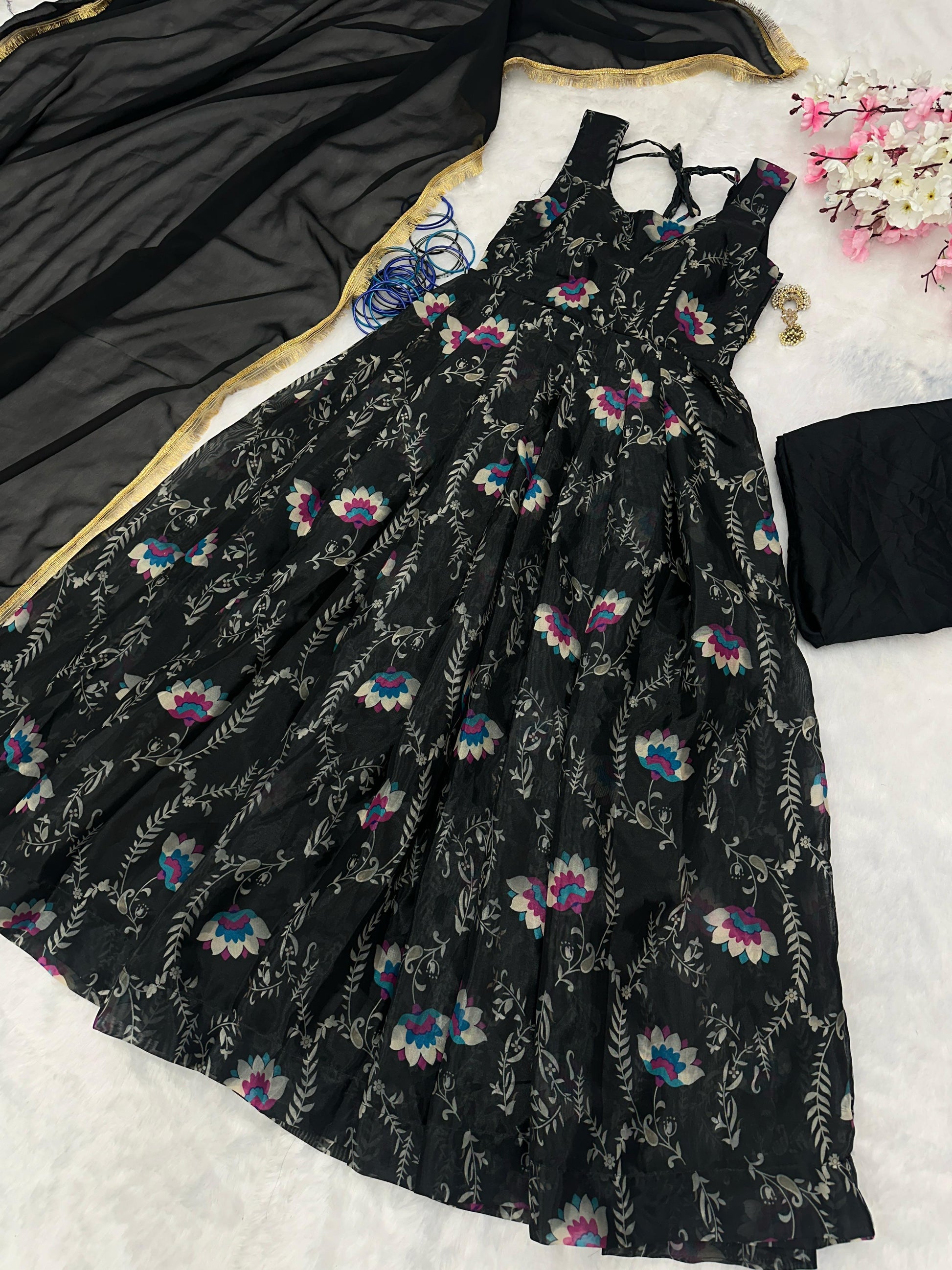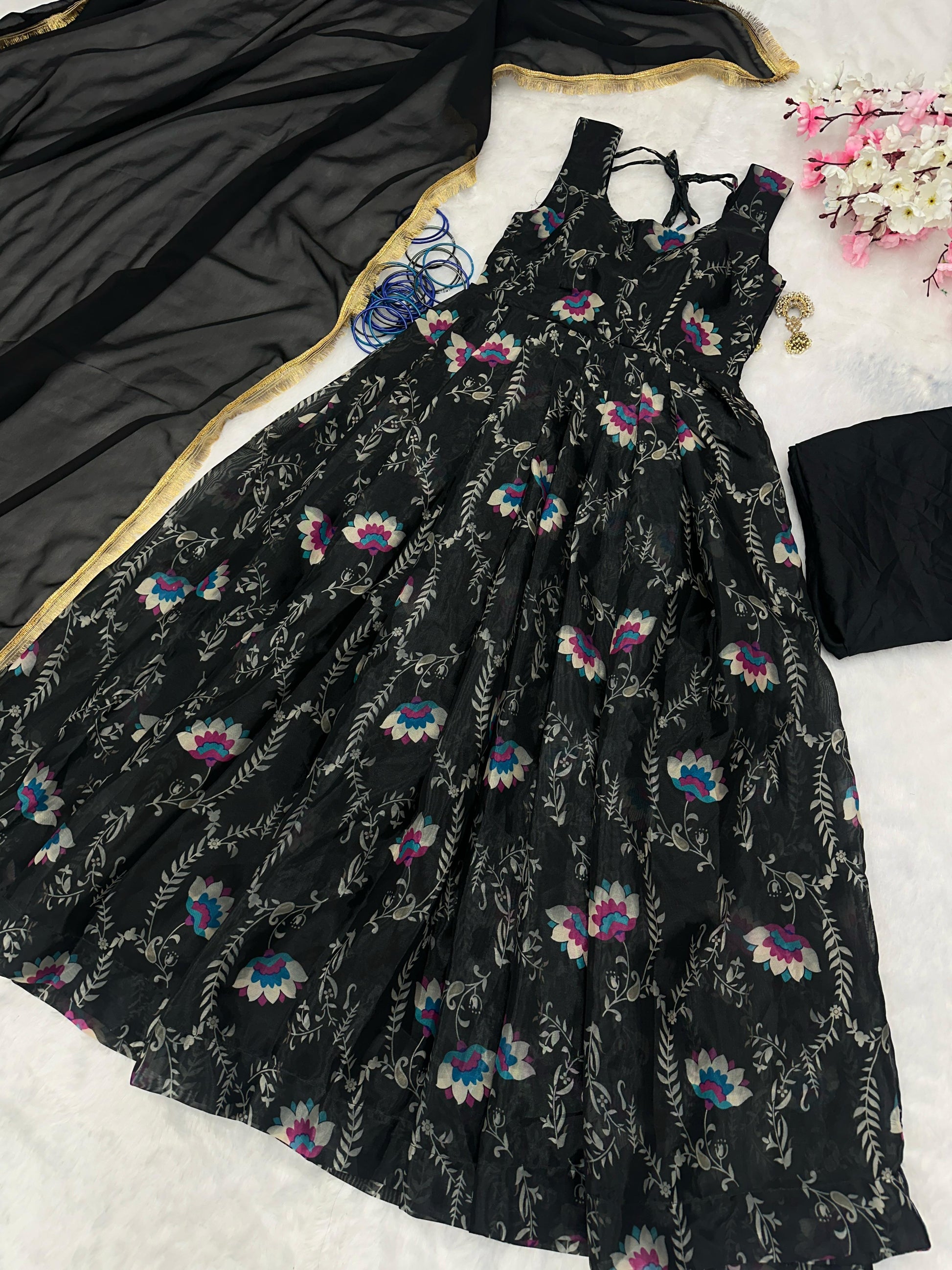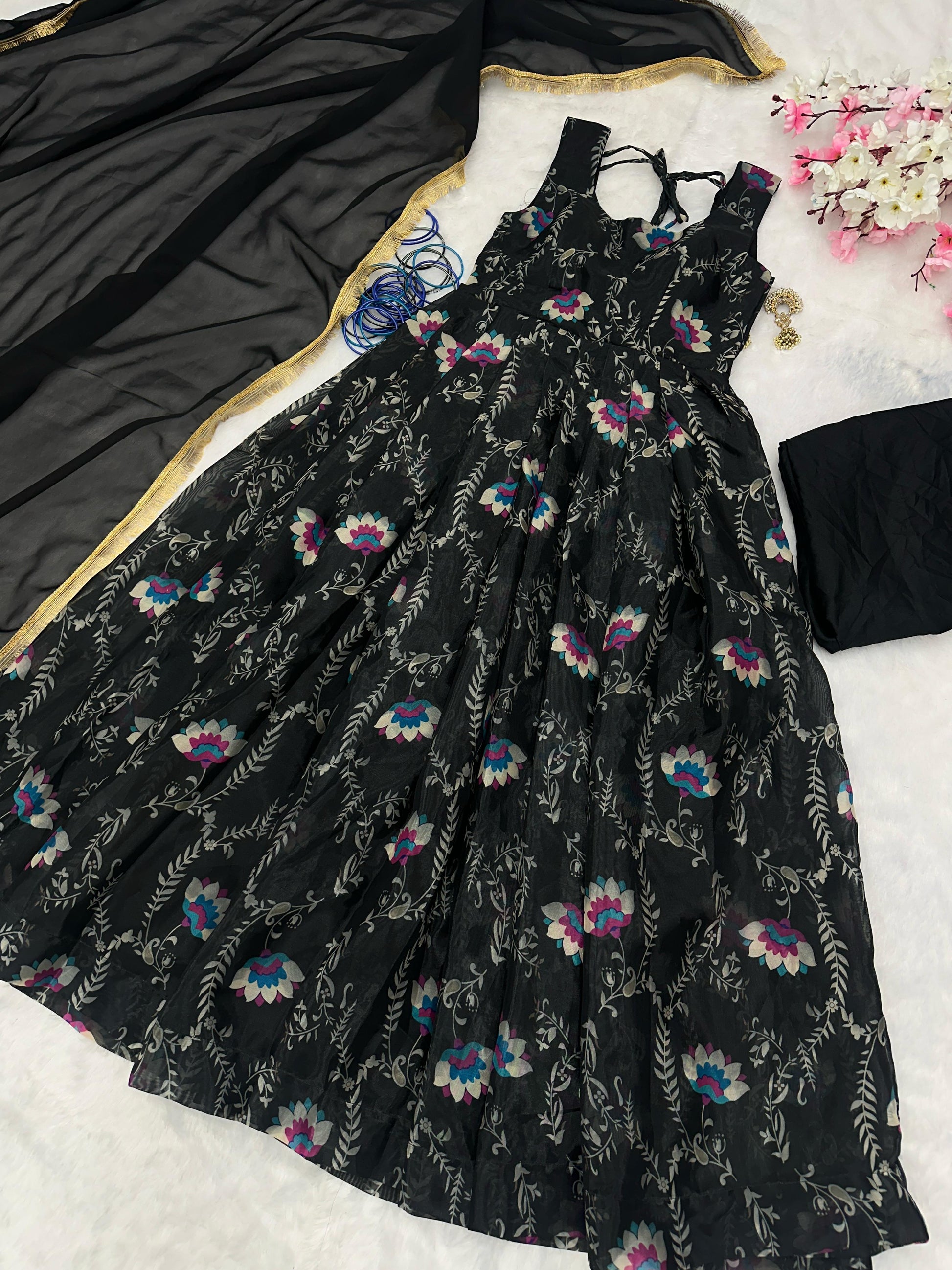 * Anarkali Gown * - pure Jimmy organza silk digital printed padded gown with 54+gown length !! 8mtr Flair outfit ! 🔥