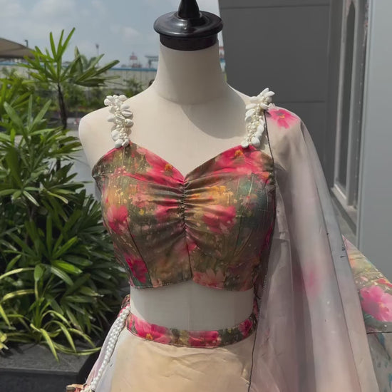 Pure Organza Digital Printed Lehnga. 8mtr Flair Lehnga With Canvas Patta And Adjustable Waist Dori