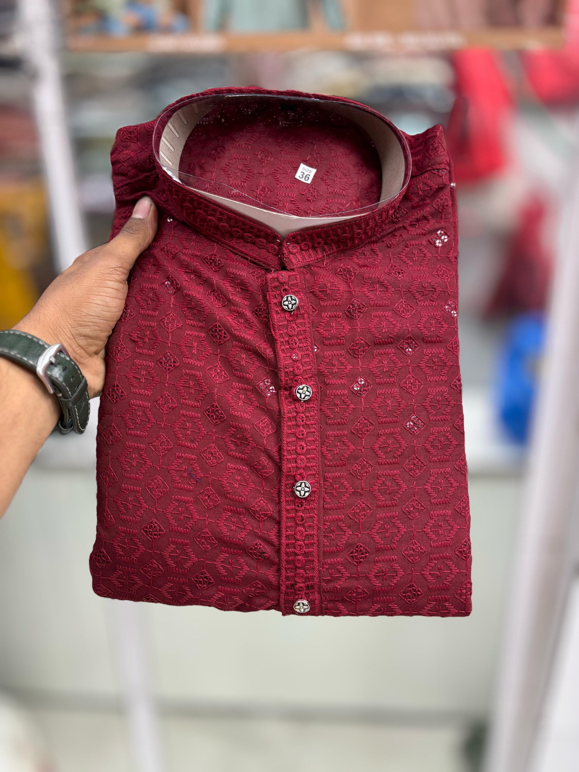 Men's Heavy Chikankari Mirror Work Kurta Pajama Set Indian Navratri Kurta Wedding & Ceremony Outfit