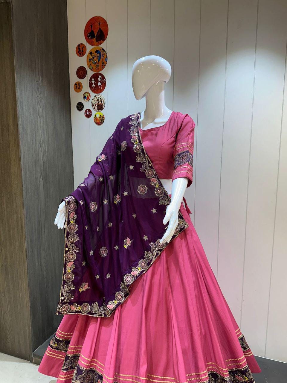 Pink Chaniya Choli for Navratri Patola Lehenga 3 pc Readymade garba Lehenga Festival outfit Gamthi Work Garba Night lehenga ready to wear
