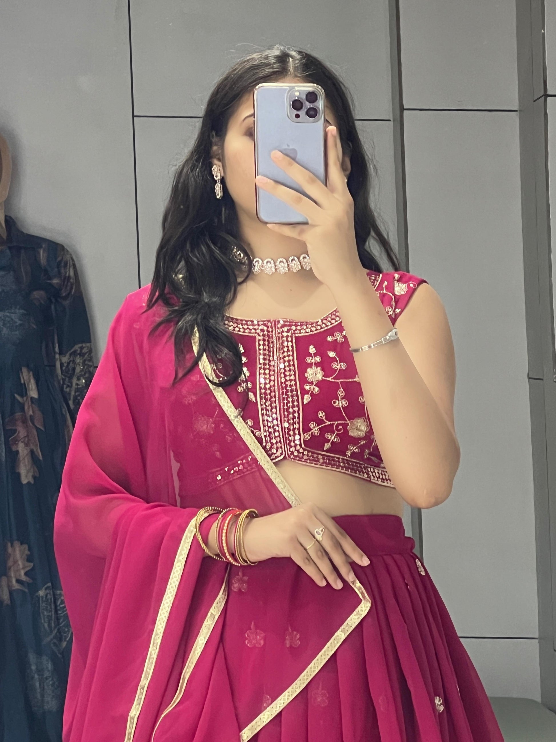 🥰Elegance meets Class in this embroidery lehenga, Embrace timeless style with a touch of tradition, perfect for any special occasion. A perfect balance between tradition and modernity.✨👜
